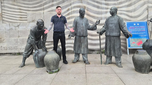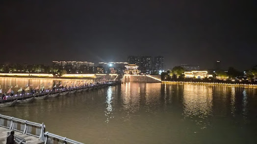 Cet endroit remonte aux dynasties Ming et Qing… et cela se ressent encore dans l’atmosphère. Autrefois, c’était un véritable centre commercial — des bateaux remontaient la rivière, les marchandises circulaient… d’une certaine manière, pas très différent de ce qu’est encore Yiwu aujourd’hui. Nous avons marché le long de l’ancien quai… traversé de magnifiques ponts illuminés… des rues pleines de petites boutiques, toutes avec ce mélange de Chine ancienne et d’énergie moderne.