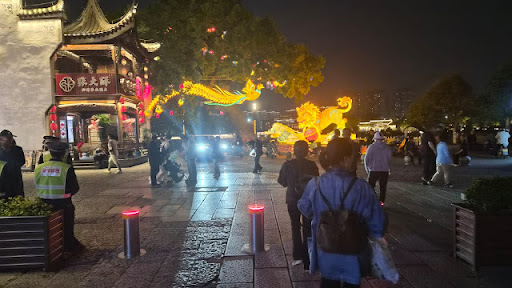 À un moment, vous regardez des bâtiments traditionnels, et l’instant d’après, un dragon lumineux serpente entre les arbres, des familles se promènent, des enfants jouent… la vie réelle se déroule autour de vous.